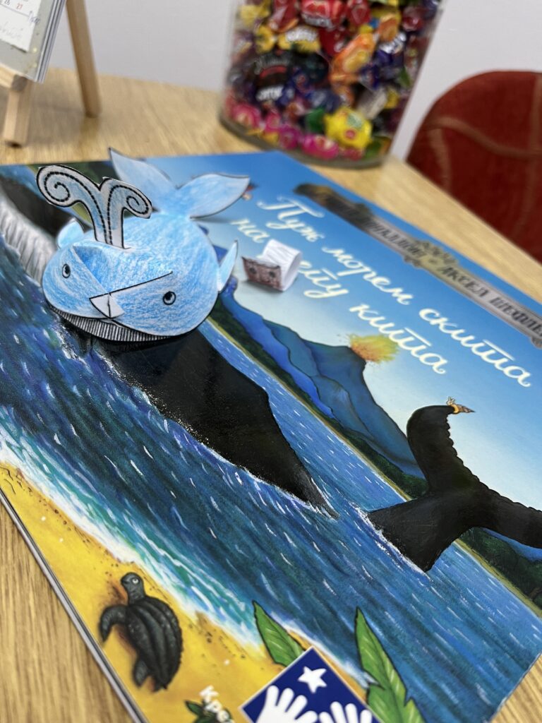 Ова књига помогла је да видимо како величина нема везе са оним што је најважније – пријатељством и оданошћу. Кроз низ авантура упознали смо се са морима, вулканима, шумама и животињама. Ученици су сазнали да пуж може бити пециво, игра али и одани друг. Колико је дугачак кит и како се прави од папира сазнали су  ученици у креативном делу радионице.