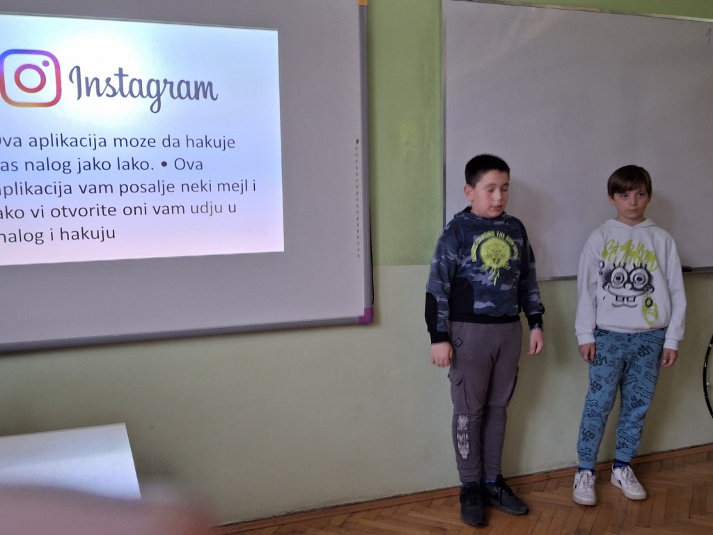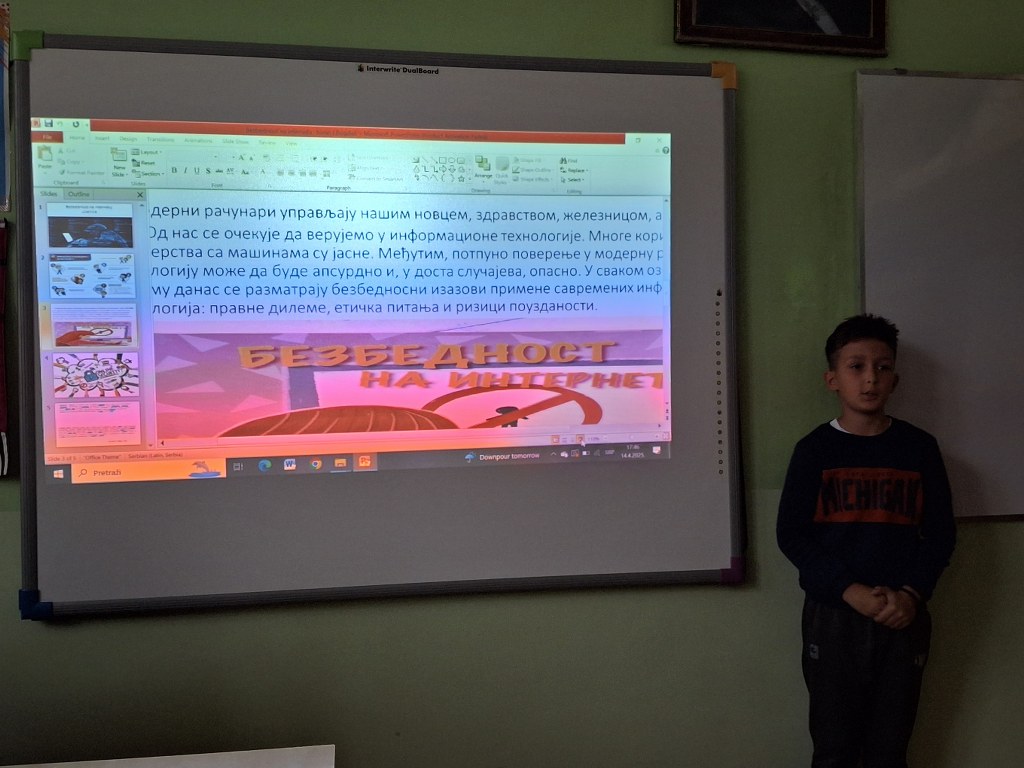 У понедељак 14. 4. 2025. године ученици одељења IV1 са учитељицом Марином Ковачевић су реализовали пројекат ,,Безбедност на интернету“ у оквиру Дигиталног света. Пројекат је представљен родитељима ученика.
