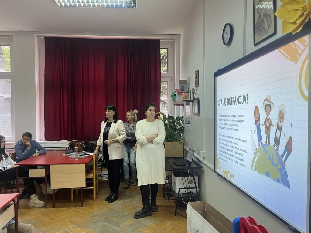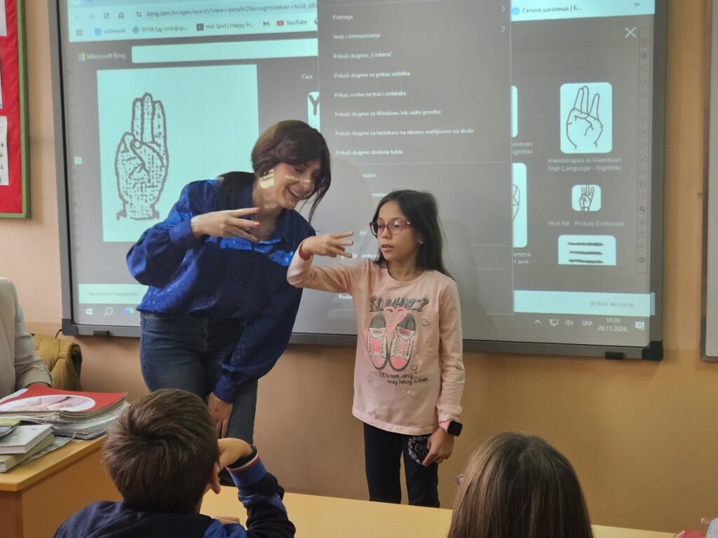 Поводом Дана толеранције у ОШ „Нада Пурић“, одржан је угледни час под називом ,,Богатство различитости“ са ученицима другог разреда. Ученици су упознати са начином на који комуницирају глуве и наглуве особе. Са лакоћом и радошћу научили су азбуку глувих, неколико речи и реченица на знаковном језику, што ће им помоћи да лакше комуницирају са особама оштећеног слуха. Дружење је завршено слушањем песмe „Не ругај се“ испраћене знаковним језиком. Циљ овог часа је подизање свести о важности поштовања и прихватања другачијих од нас. Час су реализовале логопед Светлана Матић и дефектолог – сурдолог Марија Лазаревић.