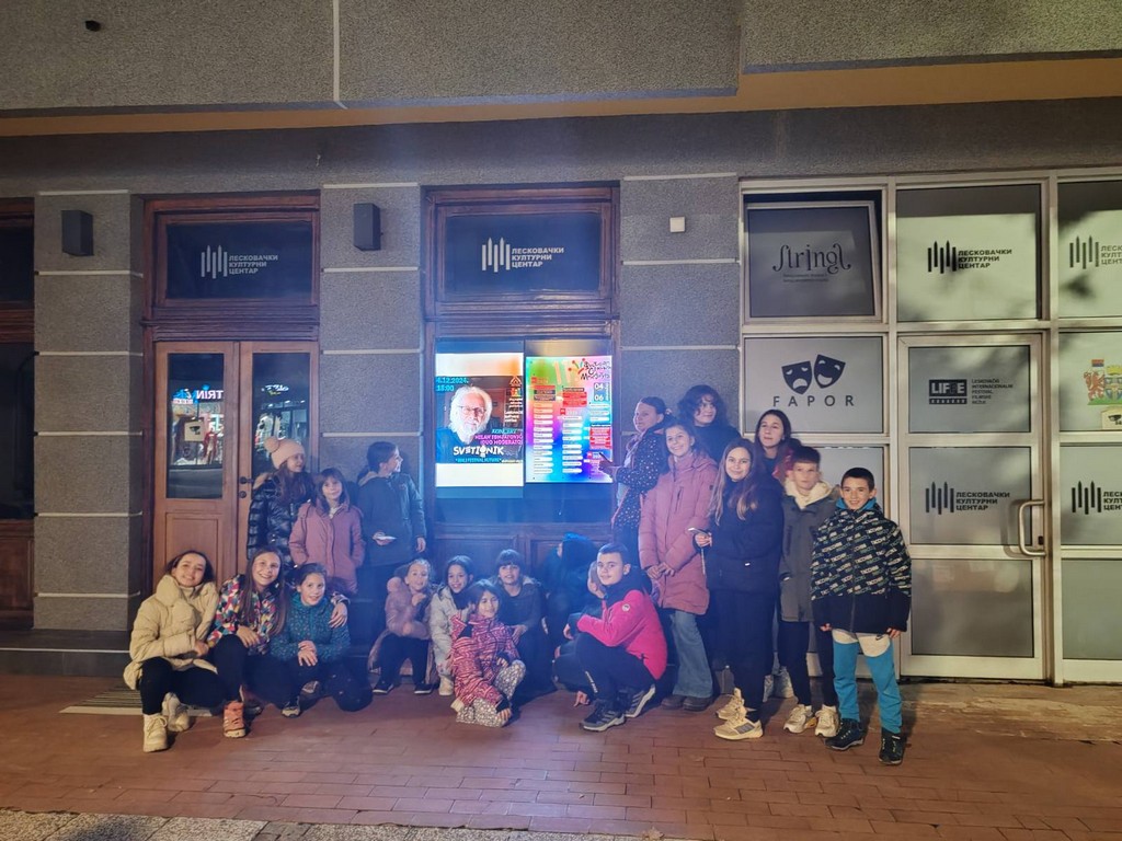 Да подсетимо, прошле недеље су обе глумачке групе изводиле представе у Школи, а остали другови су им помогли у продаји слаткиша, обележивач, воћа, сокова, па је на тај диван начин прикупљен новац за одлазак у Лесковац на Фестивал.