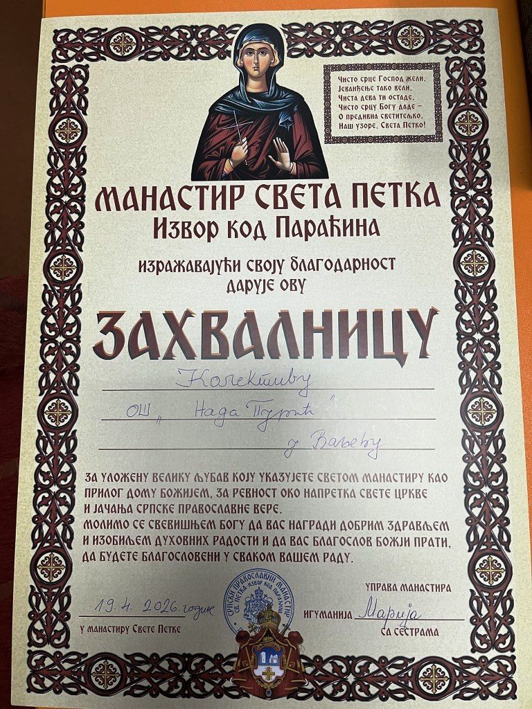 Прикупљена су средства за хигијену и постељина, намењени манастиру који, заједно са Манастиром Раваница, има дугу традицију која датира још из 14. века. Овај манастир представља јединствено место у Србији и светли пример посвећености, хуманости и хришћанске љубави.