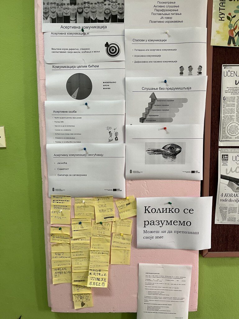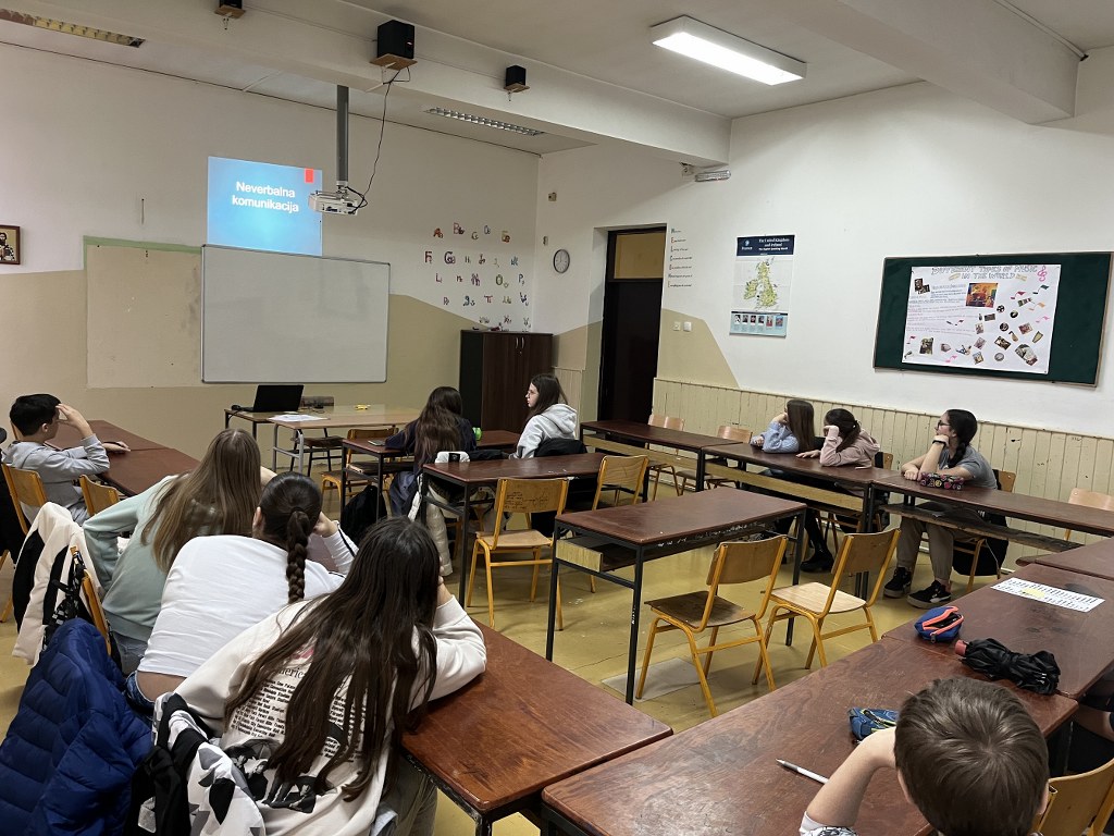 Колико се и како разумемо, шта чини комуникацију, који је њен циљ и које су катергорије имали су прилике да упознају ученици седмог разреда на предавању педагога. Колики проценат комуникације чини њен вербални део и колико су тон, јачина гласа, мимика и околина важни у правилном преносу и тумачењу поруке. Да не постоји комуникација која са собом не носи поруку чак и када је без речи. Ученици су могли да уоче и да један гест има различито значење зависно од културног контекста и начина како се показује (знак „победе“ и „ок“) али исто тако да увиде да се емоције изражавају на универзалан начин без обзира у којој смо држави.