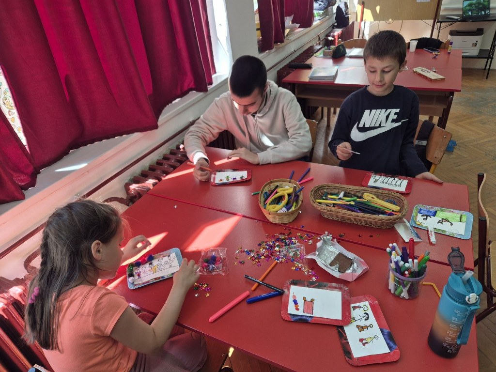 Одељења ученика са сметњама у развоју и инвалидитетом јуче су, заједно са својим дефектолозима и логопедом Светланом Матић, учествовали у посебној активности – прављењу рамова за породичне фотографије.