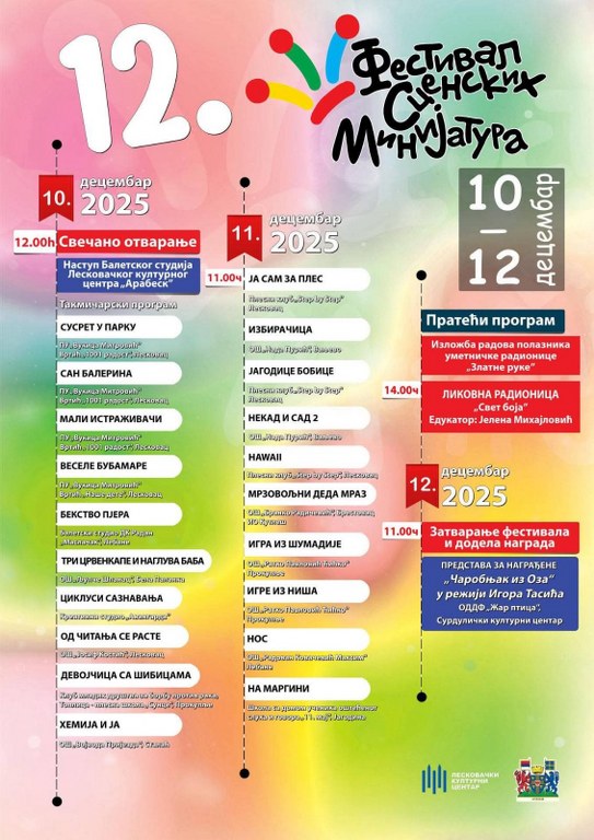 На 12. Фестивалу сценских минијатура одржаном у Лесковцу, наша Школа је учествовала са две представе: “Некад и сад 2” ученика 3. разреда и “Избирачица” ученика 7. разреда.