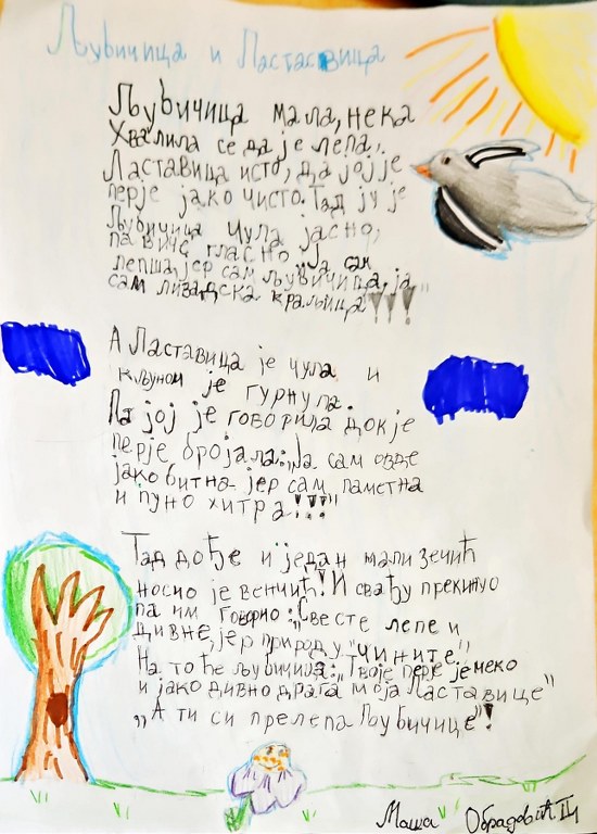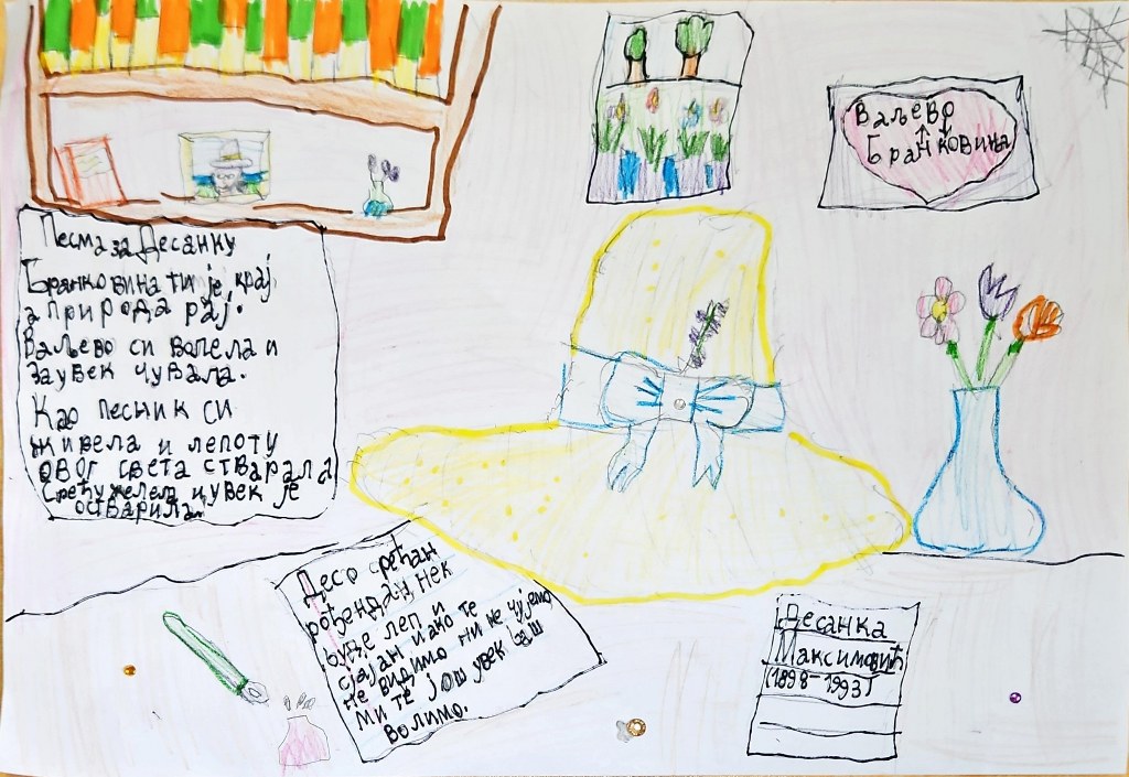 Позвао је мај све бубе на чај – слави се Десанке Максимовић рођендан, а ми ђаци другаци, стварали смо захвалнице нашој Деси кроз цртеже и песмице. Драга наша Десанка, велико ти хвала, дух твој живи у нама!