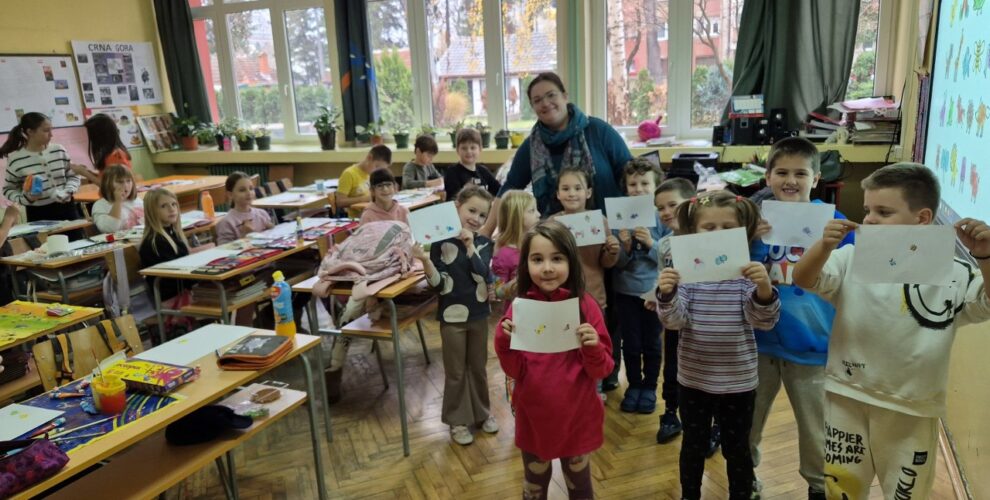 Ученици 4/2 угостили су децу припремне предшколске групе из наше школе, са васпитачицом Јеленом Радовић. На часу ликовног су отискивањем длана и прста правили нове цртеже. Кроз кратко дружење, показали смо будућим ђацима како да вежбају прстиће за писање и цртање, и како да нацртају животиње од свог отиска прста.