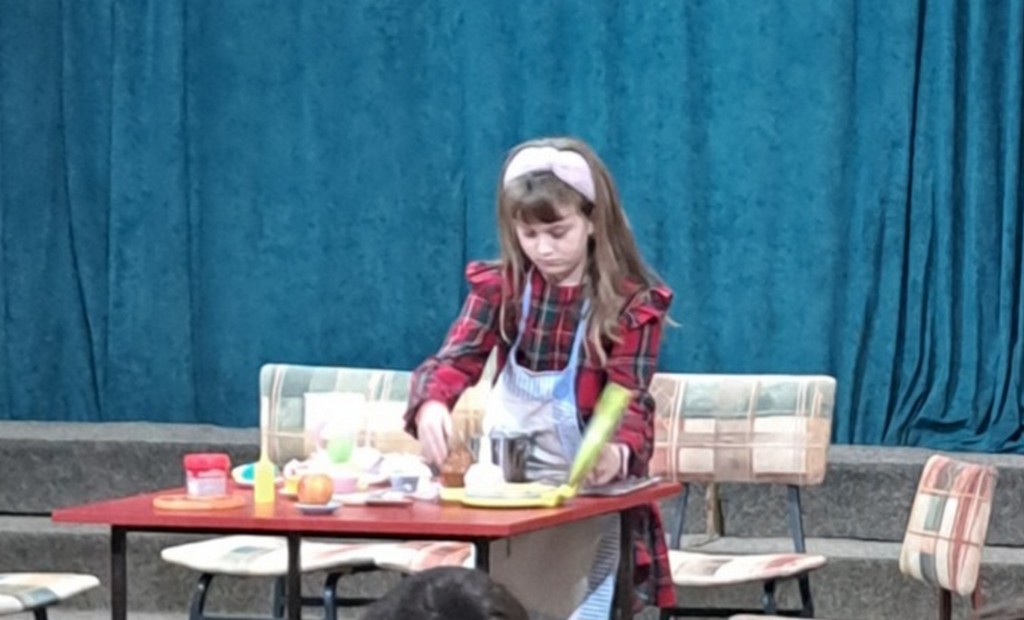 Прву представу су извели ученици другог разреда, чији је сценарио написала и режирала њихова учитељица Мирјана Беговић.