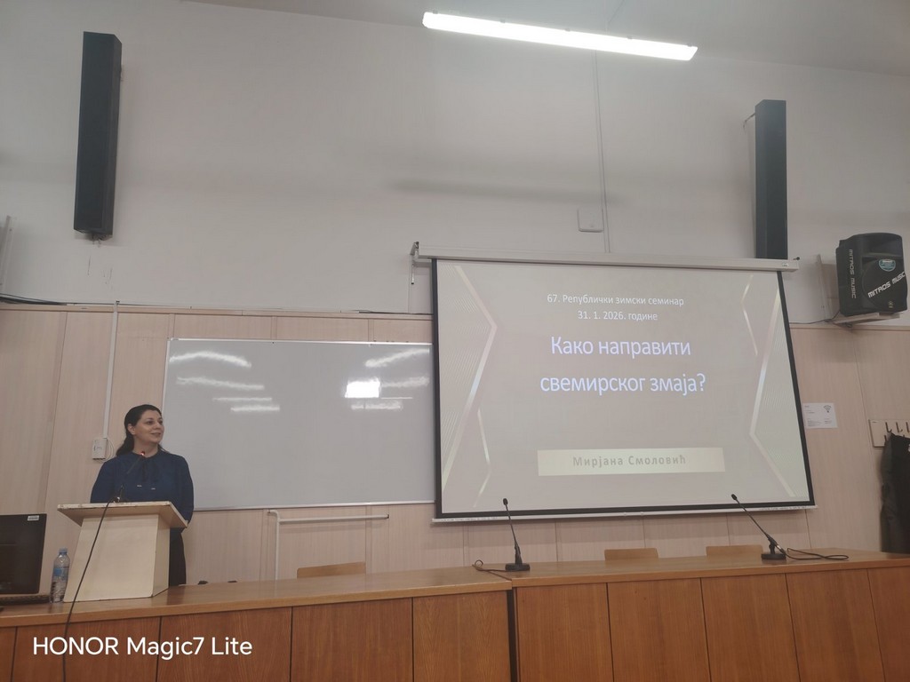 У суботу, 31. 1. 2026. године наставница Мирјана Смоловић имала је изузетну част и задовољство да на Семинару одржи радионицу „Како направити свемирског змаја?ˮ, са примерима из праксе. Представљени час обраде драме „Свемирски змај” Душана Ковачевића задржава најбоље од традиционалног приступа настави, уводећи истовремено бројне иновације. Присутни наставници проценили су да је радионица била врло занимљива и корисна.