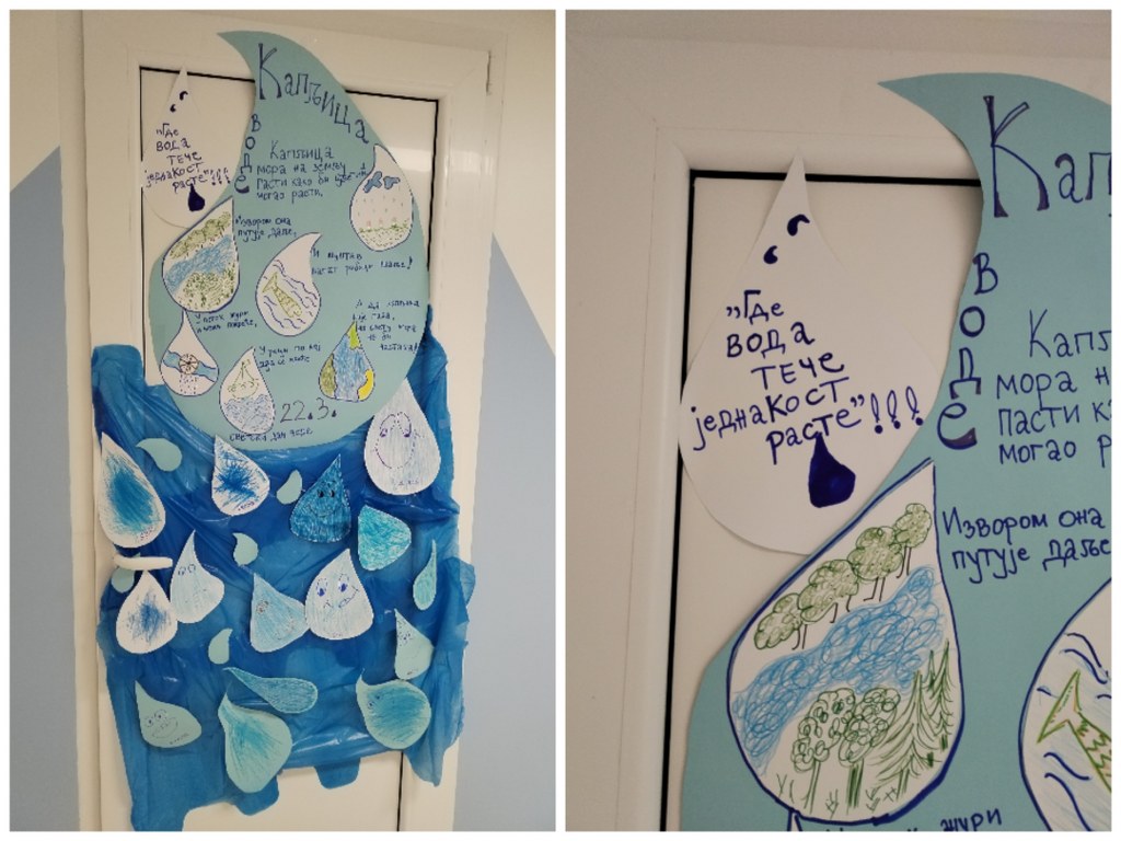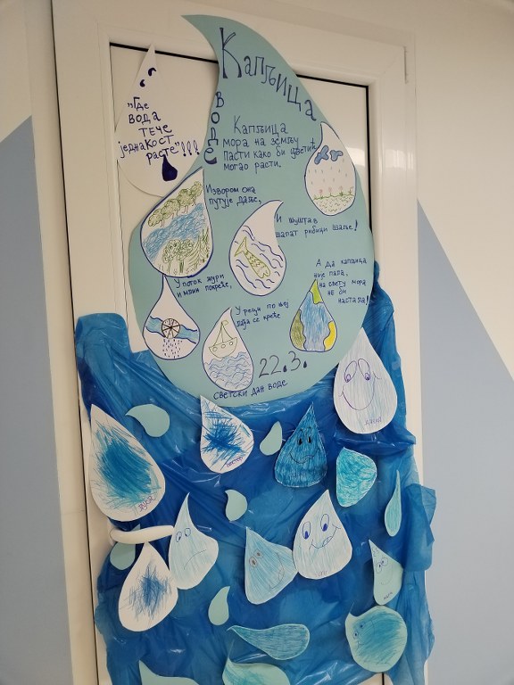 Светски дан вода обележава се сваке године 22.марта.То је прилика да се подсетимо колико је вода драгоцена, али и да научимо како је можемо сачувати.овогодишњи слоган је ” Где вода тече, једнакост расте.” Ученици Одељења са сметњама у развоју са својим наставницама Вањом и Јасном,кроз различите активности славили воду и њен значај.Својим активностима, желели су да узму учешће у глобалној акцији,у подстицају очувања здраве и пијаће воде.