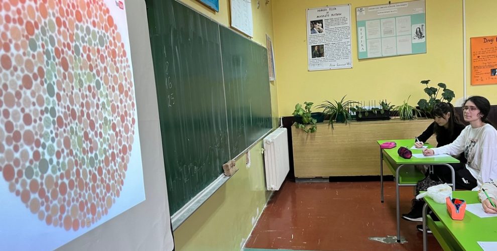Постоје посебне технике за испитивање осетљивости на боје / колоритног вида. Један од њих Ishihara тестом, са којим су ученци имали прилике да раде на радионици и стекну увид да ли постоје потешкоће у препознавању боја.