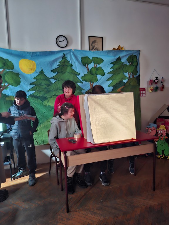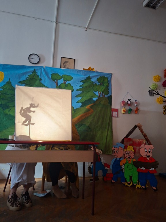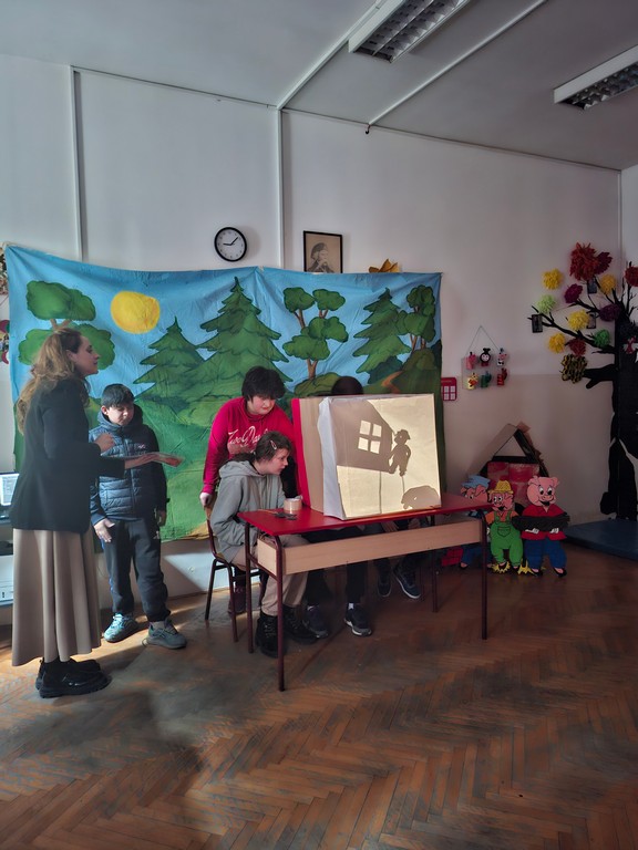 На данашњем угледном часу ученици са сметњама у развоју и инвалидитетом имали су прилику да се упознају са причом „Три прасета“ кроз технику позоришта сенки. Час су реализовали дефектолози наставници. Припрема часа је реализована заједнички, са посебним нагласком на креативност, активно учешће и развој вештина комуникације и пажње.