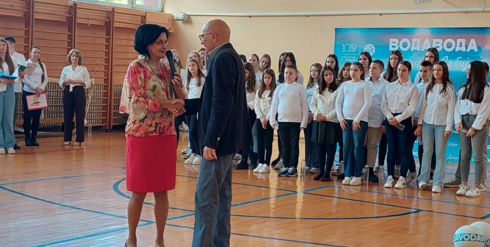 Школу су посетили промотери овог лепог пројекта, Братислав Бата Ђорђевић, играч и кошаркашки тренер, Зоран Стојачић, идејни творац иновативног коша и Александра Доганџић, ПР компаније “Вода Вода”. Госте је поздравила и захвалила се на донацији, директор Школе Ана Савковић.